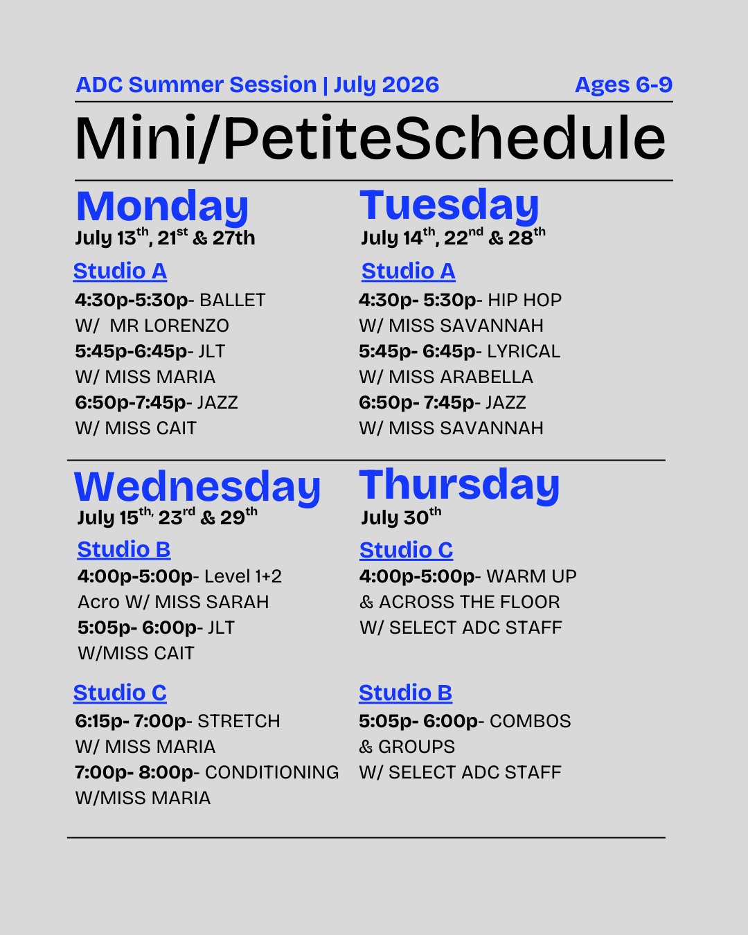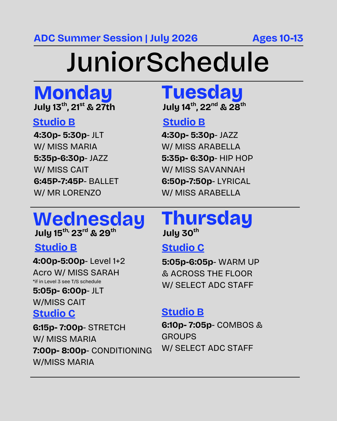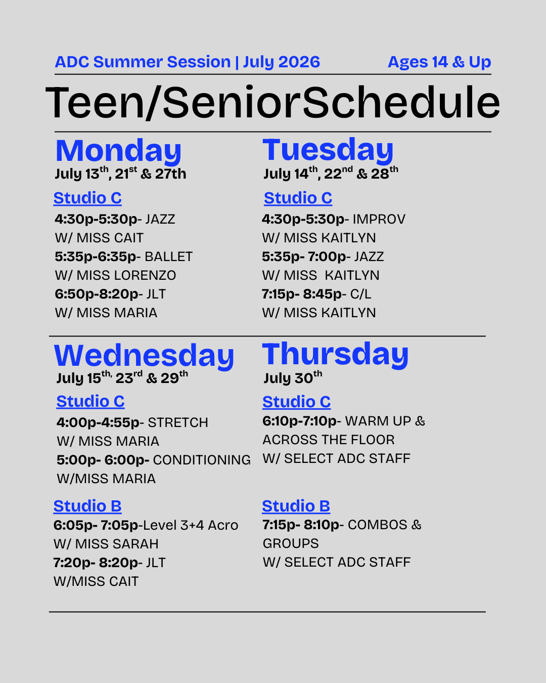 2025.2026 Dance Schedule